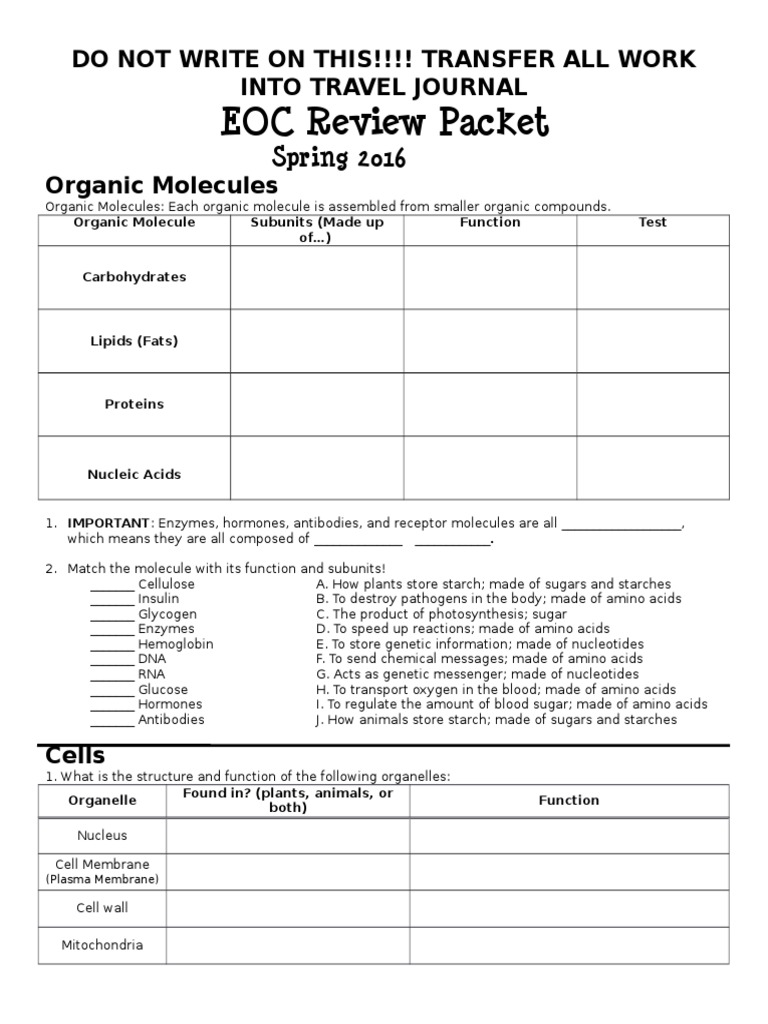 Evidence about microorganisms continued to accumulate. Thank you enormously much for downloading biology eoc review packet answer key.most likely you have knowledge that, people have see numerous period for their favorite books merely said, the biology eoc review packet answer key is universally compatible with any devices to read. How is it possible that most of an organism's cells have the same dna but perform different functions within the organism? Janssen 10 years, 8 months ago. Learn with flashcards, games and more — for free.